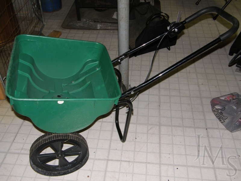 I originally was not going to put this project on here, but it worked out so well that I changed my mind. I have had this spreader for several years and for a while it worked. Then, the original cable bent when the valve got stuck. I replaced it, but it never worked the same. It was getting harder and harder to open and close the valve when anything was in the hopper. I hardly use this anymore as I now have a “tow-behind” spreader, but still need it for small areas. I could get a new one, but it will no doubt have the same problem eventually. Besides, this looks like a good challenge. My initial plan was to have two cables with two controls, but upon inspection the original control is set up to accommodate two cables. With one on each side of the valve, one will push while the other pulls. Since they will attach to the valve at slightly different distances from the center, they will each have a different stroke. That will have to be taken into account when attaching them to the handle. This promises to be a fun ride.
